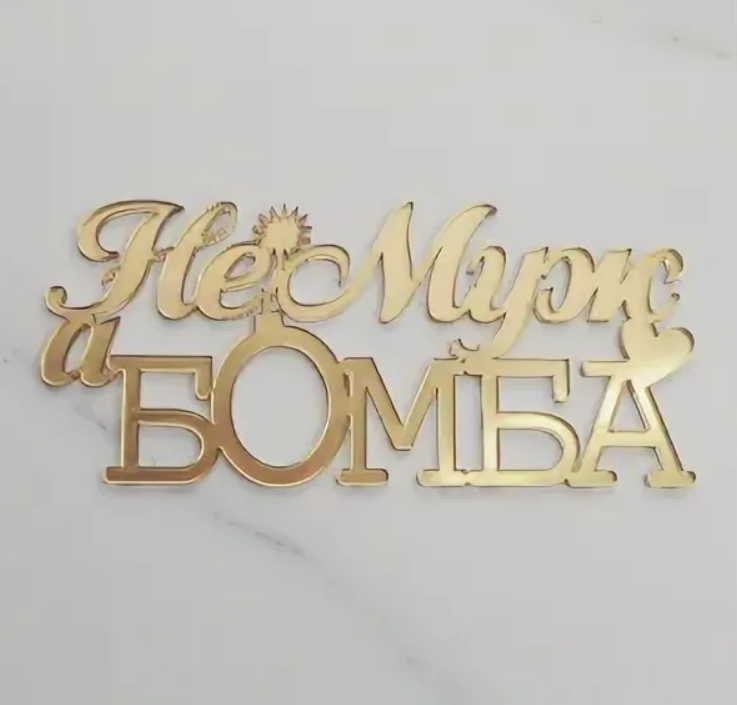 Бенто-топпер / Не Муж, а БОМБА / акрил зеркальный золото