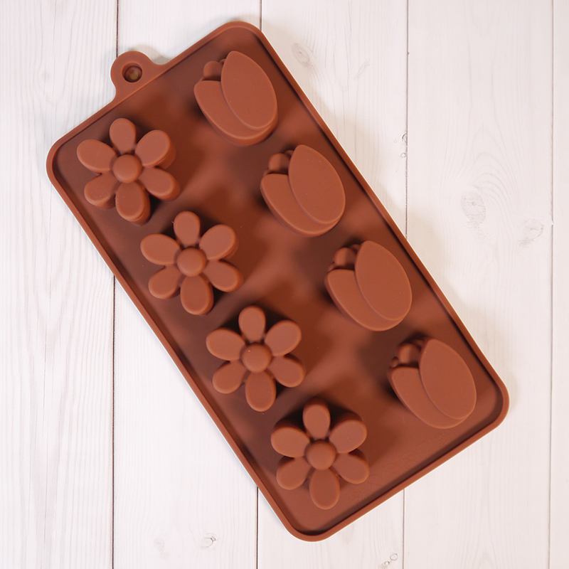 Форма силиконовая для шоколада "Тюльпан и ромашка" 20*10 см, 8 ячеек