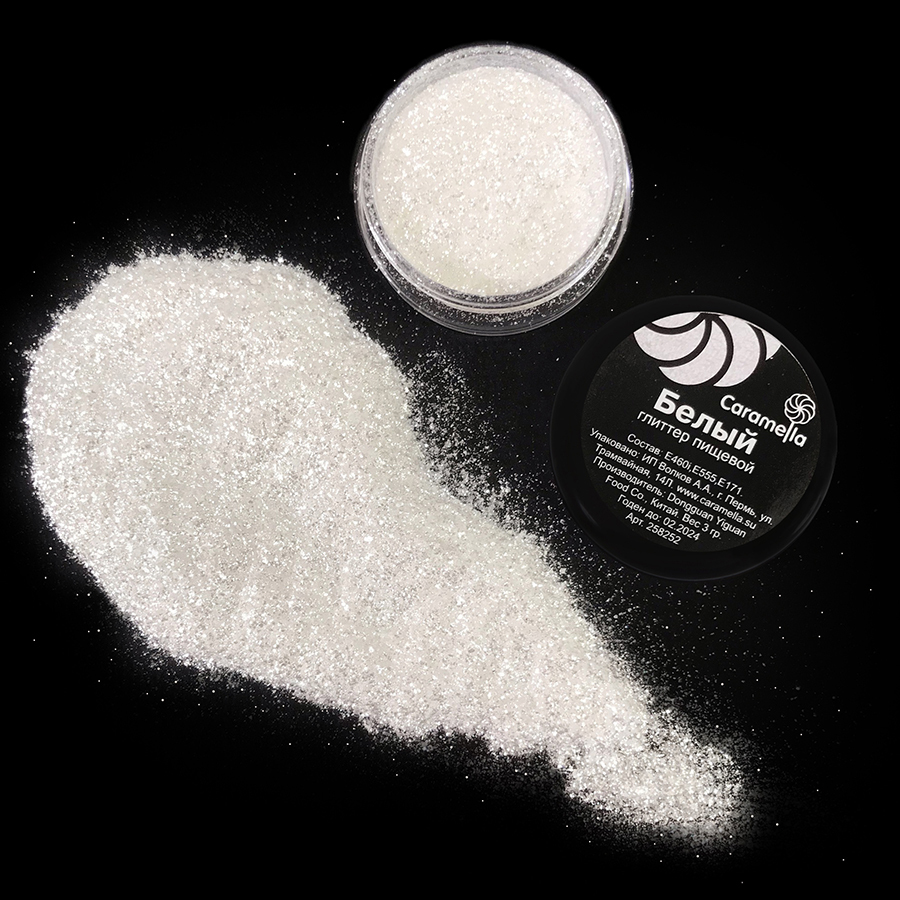 Глиттер съедобный пищевой Белый Caramella, 3 гр