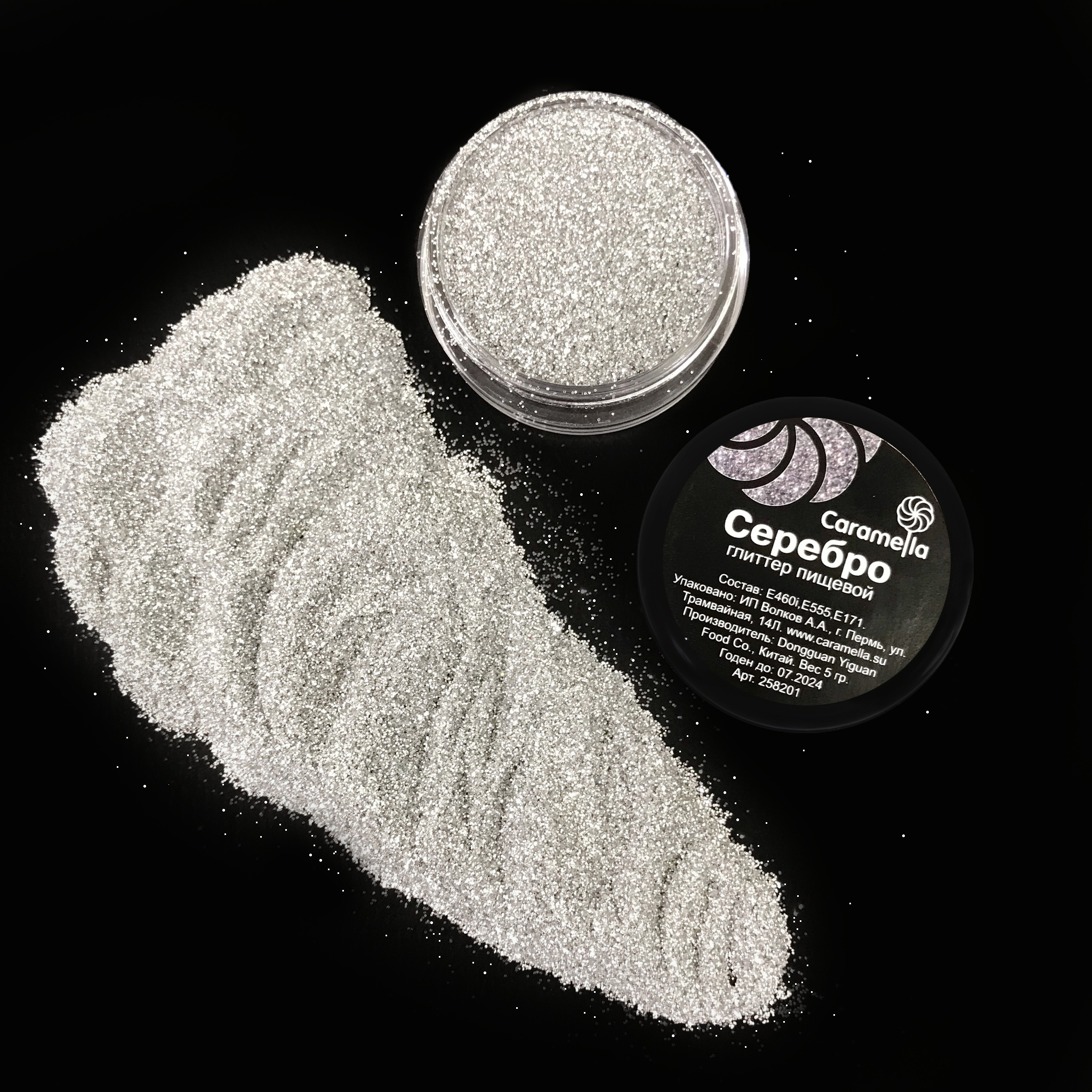 Глиттер съедобный пищевой Серебро Caramella, 5 гр