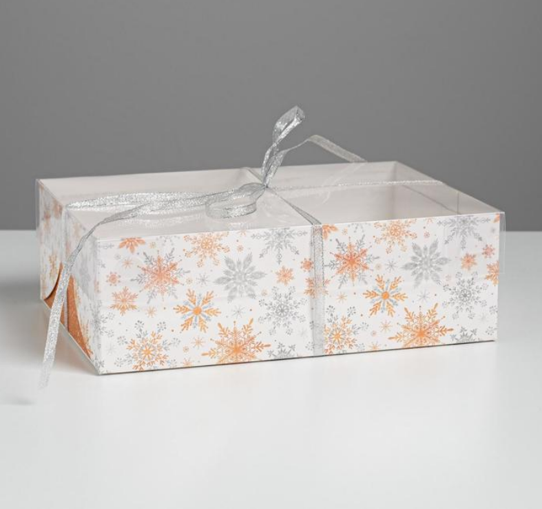Коробка для 6 капкейков «Снежинки», 23 × 16 × 7.5 см