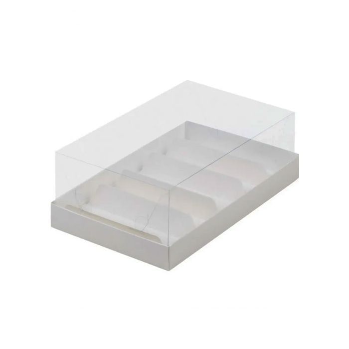 Коробка для эклеров и пирожных с прозрачным куполом 220*135*70 мм белая