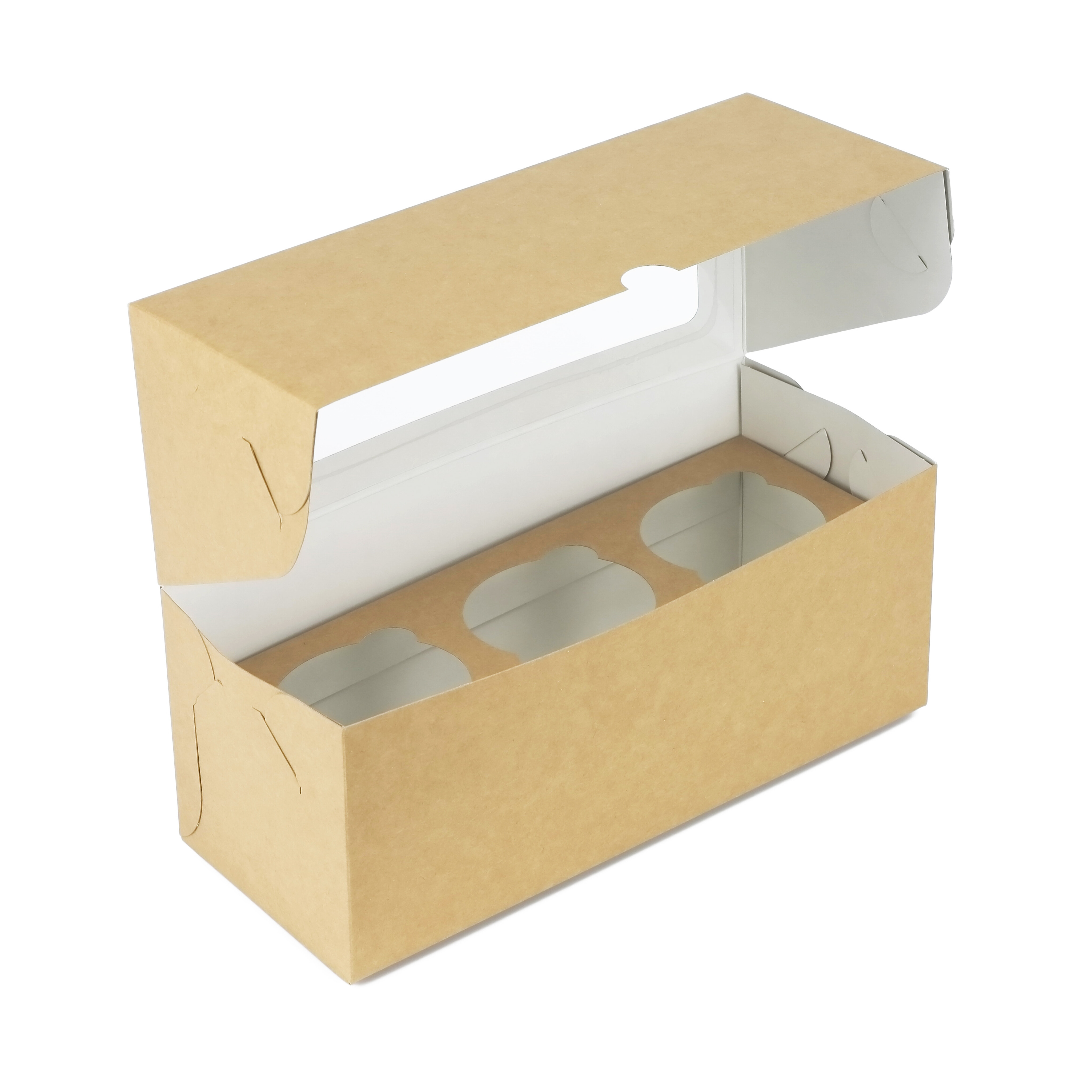 Коробка для капкейков 3 шт с окошком 240*100*100 мм (крафт)