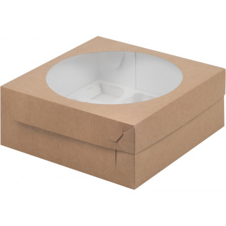 Коробка для капкейков 9 шт с окошком 235*235*100 мм (крафт)