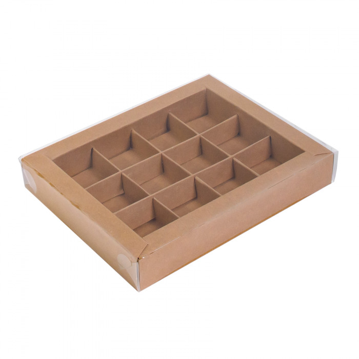 Коробка для конфет 12 шт с пластиковой крышкой 190*150*30 мм (крафт)