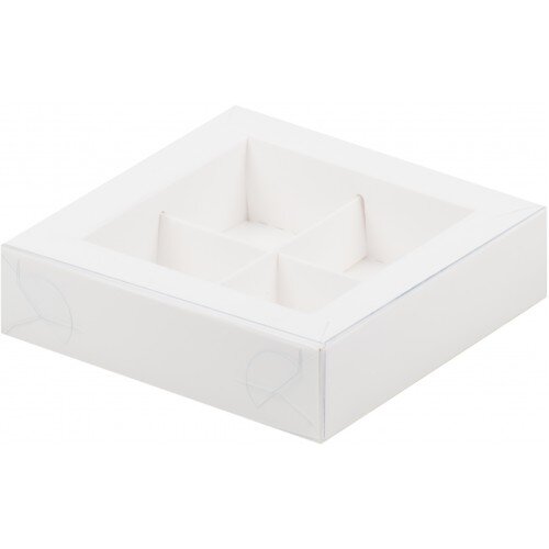 Коробка для конфет 4 шт с пластиковой крышкой 120*120*30 мм (белая)