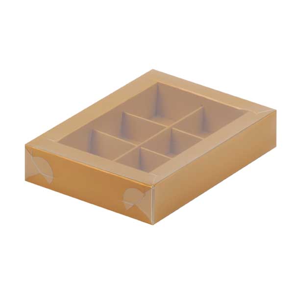Коробка для конфет 6 шт с пластиковой крышкой 155*115*30 мм (крафт)
