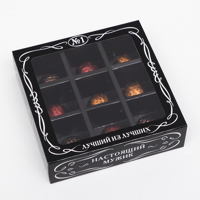 Коробка для конфет 9 шт "Мужская" 137*137*137 мм (черная)