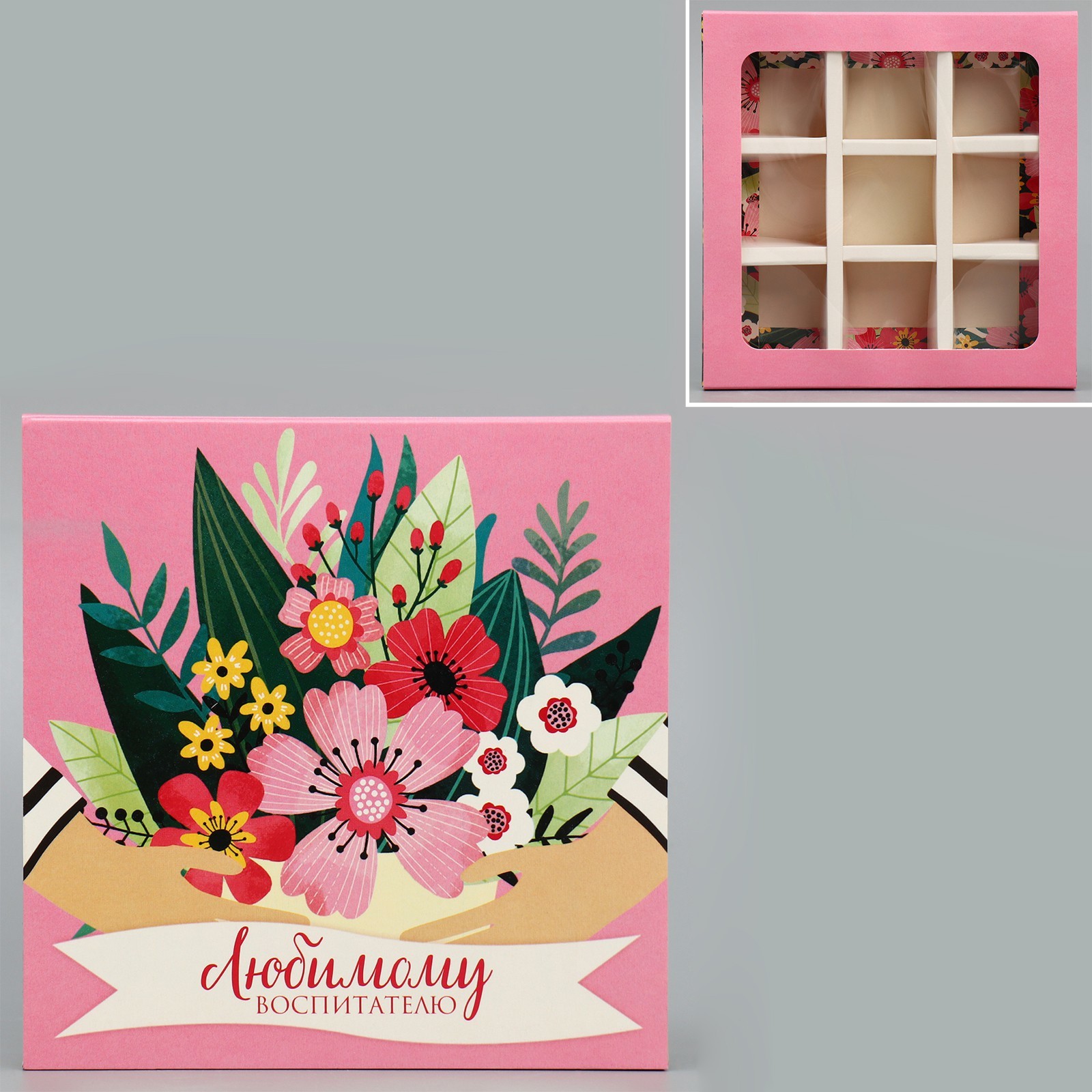 Коробка для конфет, кондитерская упаковка, 9 ячеек, «Любимому воспитателю» 14.5 х 14.5 х 3.5 см
