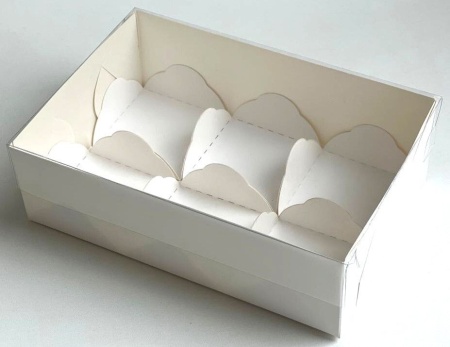 Коробка для моти 6 шт с пластиковой крышкой 175*120*55 мм (белая)