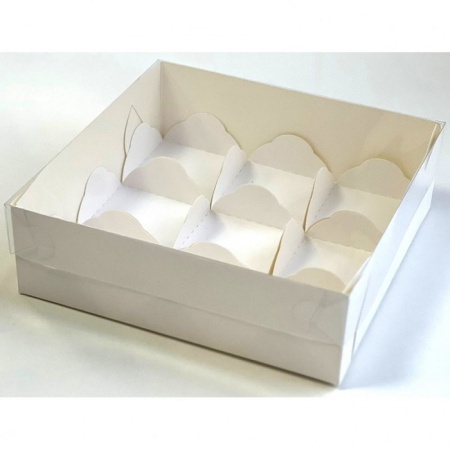 Коробка для моти 9 шт с пластиковой крышкой 175*175*55 мм (белая)