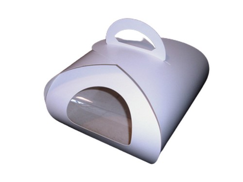 Коробка для торта с ручкой и окном картон 260*260*180 мм (белая)