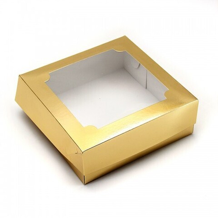 Коробка для зефира и печенья с окошком 200*200*50 (золото)