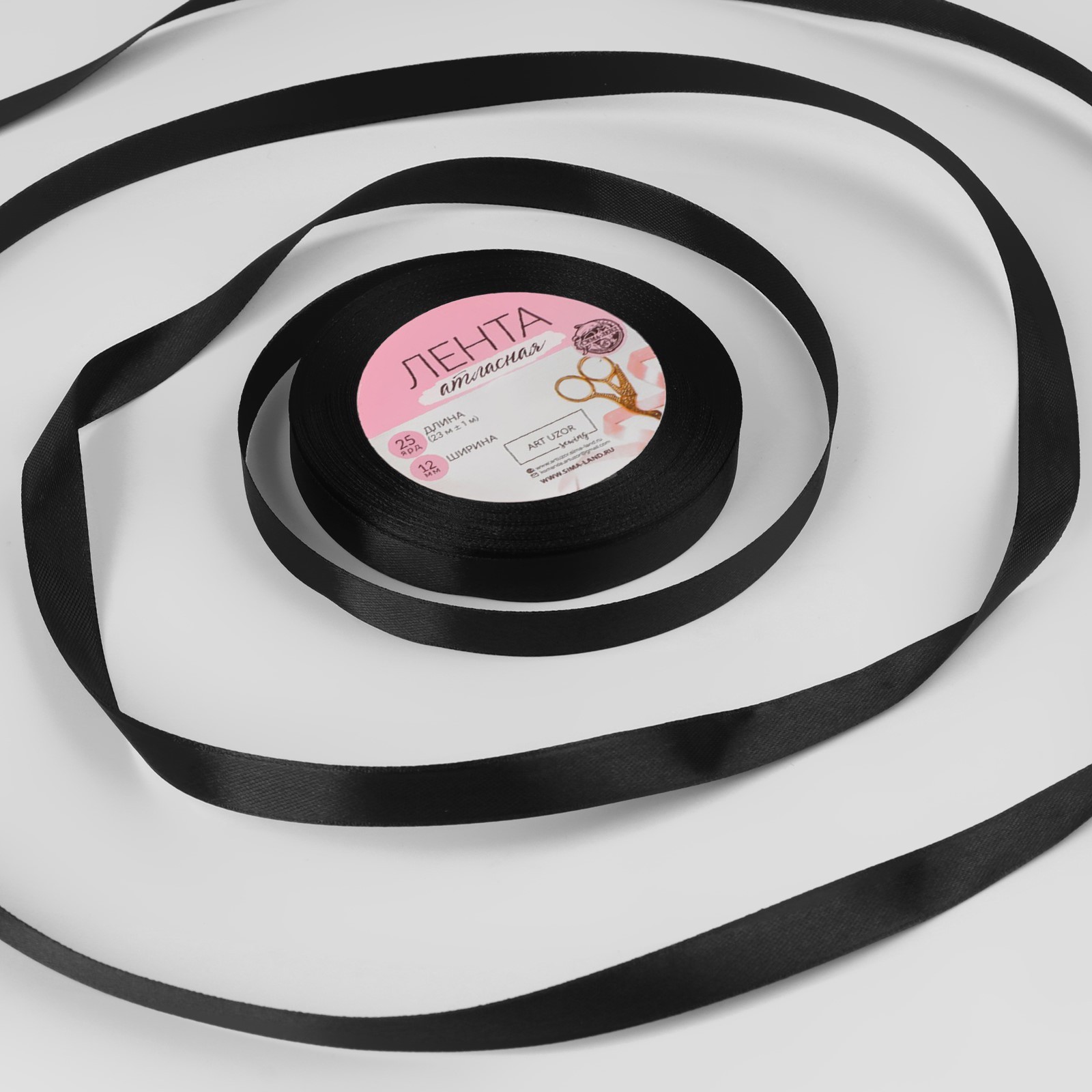 Лента атласная 10-12мм*25ярд Черный