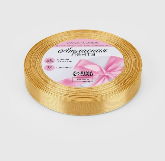 Лента атласная 12мм*25ярд золотой