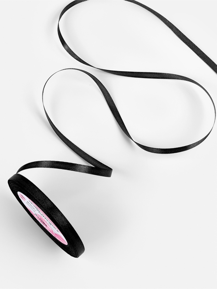 Лента атласная, 6 мм × 23 ± 1 м, цвет чёрный