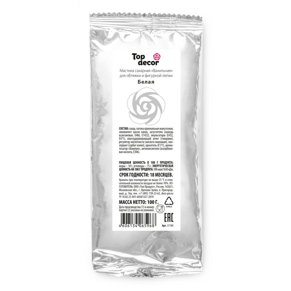 Мастика сахарная "ванильная БЕЛАЯ" Top Decor 100 гр