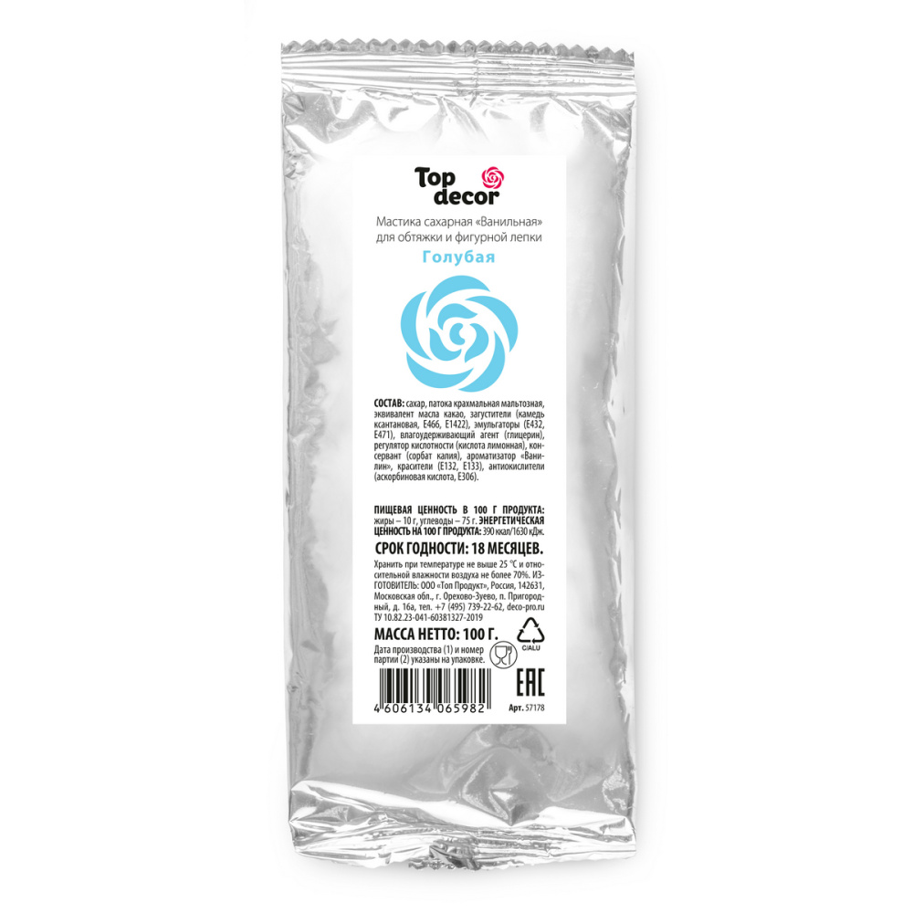 Мастика сахарная "ванильная ГОЛУБАЯ" Top Decor 100 гр