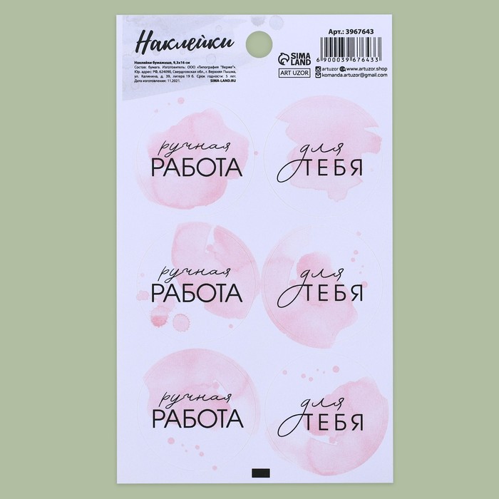 Наклейки «Ручная работа в розовом», 9 × 16 см
