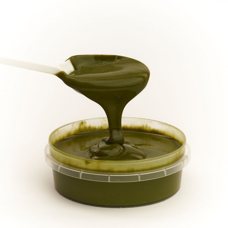 Густая кремообразная паста темно-зеленого цвета со вкусом и ароматом фисташковых орехов.