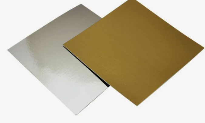 Подложка для торта квадратная, толщина 1,5 мм., цвет золото/серебро размер 220*220 мм
