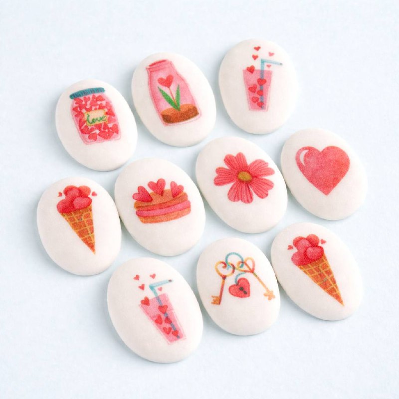Посыпка медальоны сахарная с картинкой микс: «Любовь» для декора капкейков, торта, напитков.