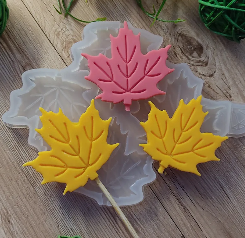 Силиконовая форма для леденцов Кленовые листья (3шт)