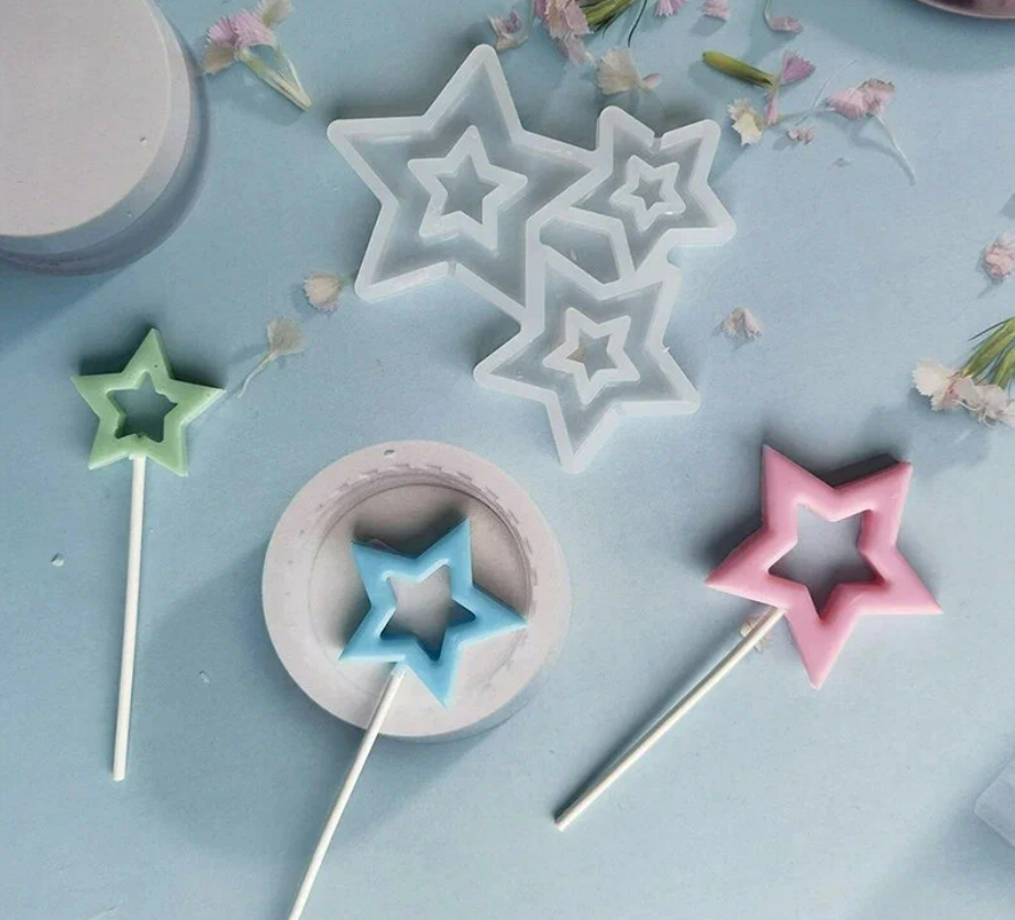 Силиконовая форма для леденцов «Звезды сквозные 3 в 1»