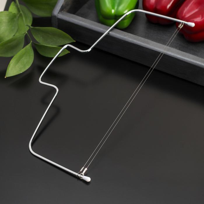 Струна для нарезки бисквита – незаменимый помощник и профессионального кондитера, и домашнего кулинара. Нарезка пышного бисквита на аккуратные продольные части отнимает порой неоправданно много времени и сил. Удобный инструмент позволит разделить коржи на идеально ровные доли в считанные секунды. Обычный нож с длинным лезвием не даст вам возможности добиться такого безупречного результата.