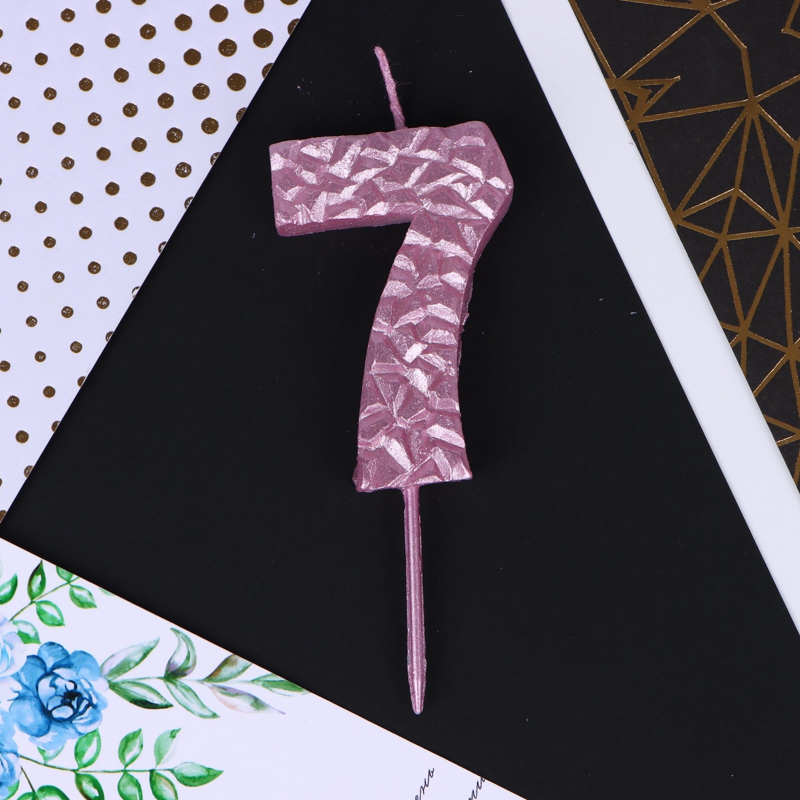 Свеча для торта розовая "Кристалл", цифра 7