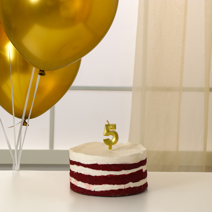 Свеча для торта цифра золотая 5 + воздушные шары, 5шт
