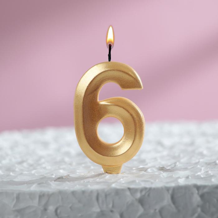 Свеча тортовая цифра Золотая 6