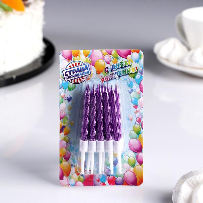 Свечи для торта "Спираль", фиолетовый металлик, 7 см 10 шт
