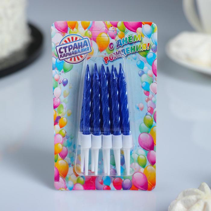 Свечи для торта "Спираль", синий металлик, 5-7 см 10 шт