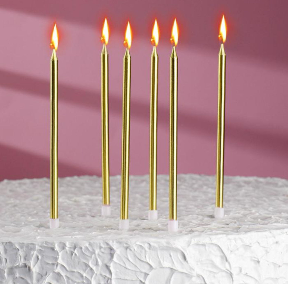 Свечи в торт коктейльные "Ройс", 6 шт, 13,5 см, золотой металлик
