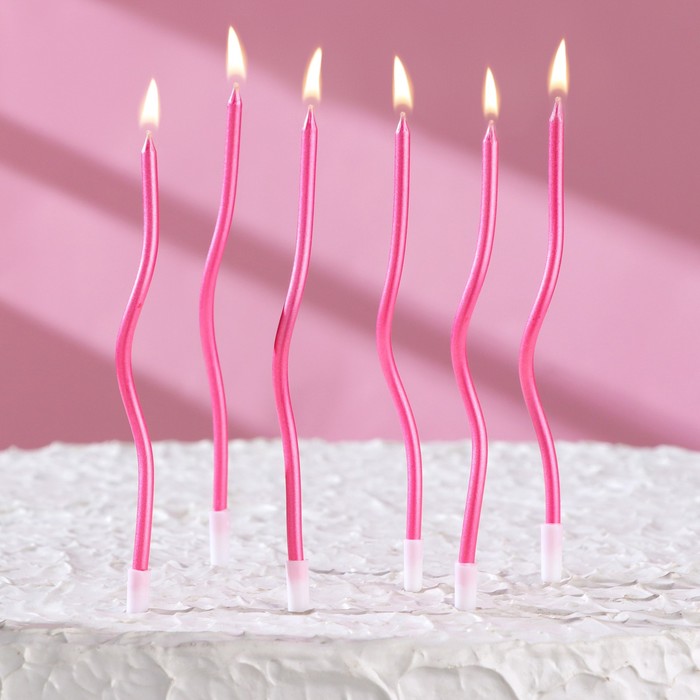 Свечи витые "Серпантин" 6 шт, 12 см, розовый металлик