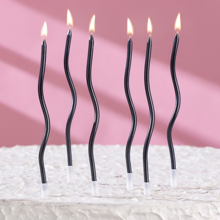 Свечи витые "Серпантин" 6 шт, 15 см, мокрый асфальт
