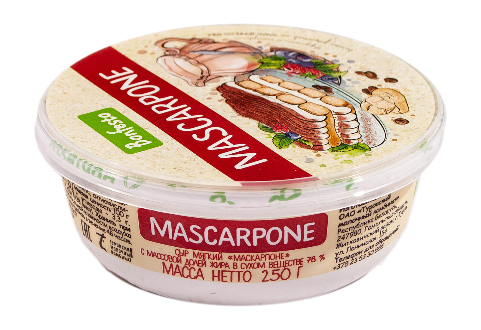 Мягкий сыр, который создается по традиционному итальянскому рецепту и применяется чаще всего для разнообразных пирожных и десертов. Кремообразный сыр прекрасно сочетается с бисквитом, шоколадом, фруктами и сладкими ягодами. Именно его используют для популярного пирожного на основе печенья Савоярди – Тирамису. Кроме того, продукт станет отличной альтернативой сливочному маслу для тостов или бутербродов во время завтрака.