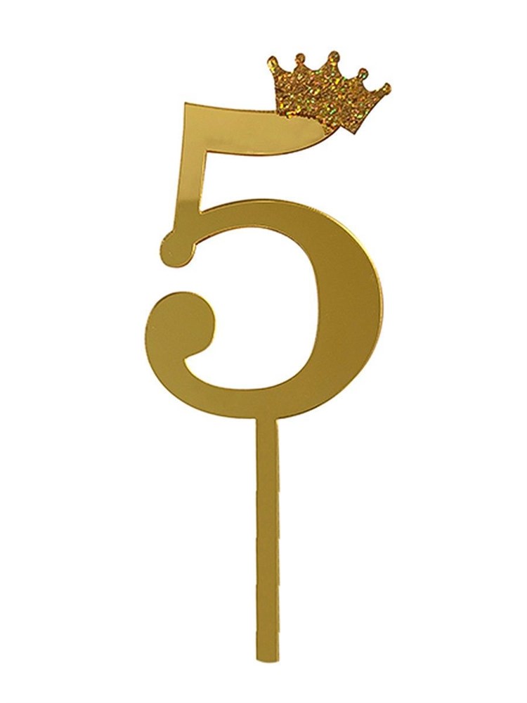 Топпер акриловый «Цифра 5» (6,2 см, золотой)