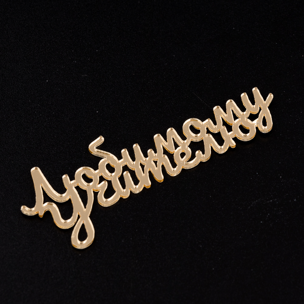 Топпер без шпажки "Любимому учителю", золотой 8*3 см.