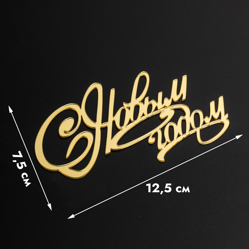 Топпер без шпажки "С Новым годом, завиток" золотой 12*8 см