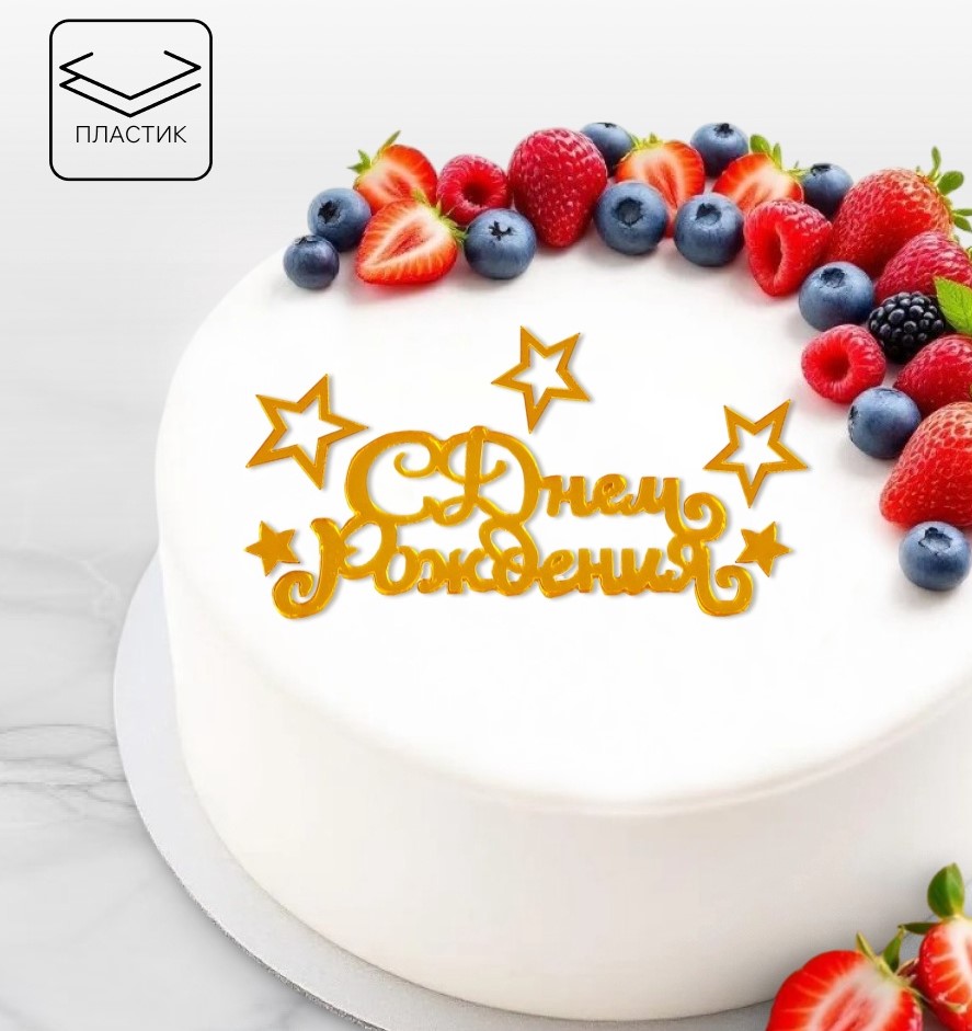 Топпер для торта С днем рождения с отдельными звездами