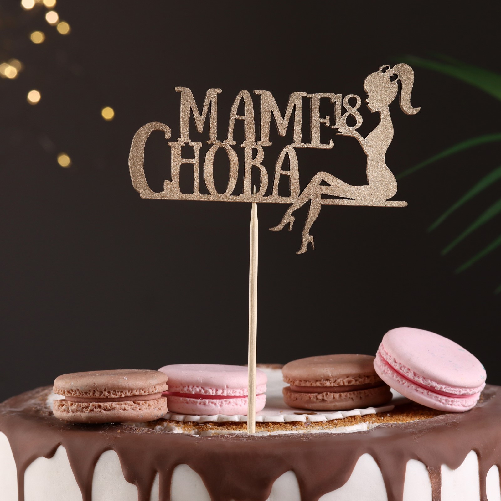 Топпер "Маме снова 18, №5", золотой (дерево)